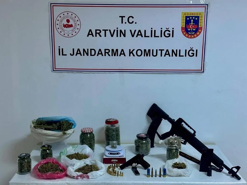 Artvin’in Kemalpaşa ilçesinde jandarma ekiplerince düzenlenen uyuşturucu operasyonunda çeşitli miktarlarda uyuşturucu madde ve silah ele geçirildi. Operasyonda gözaltına alınan 3 şüpheliden 1’i tutuklandı.