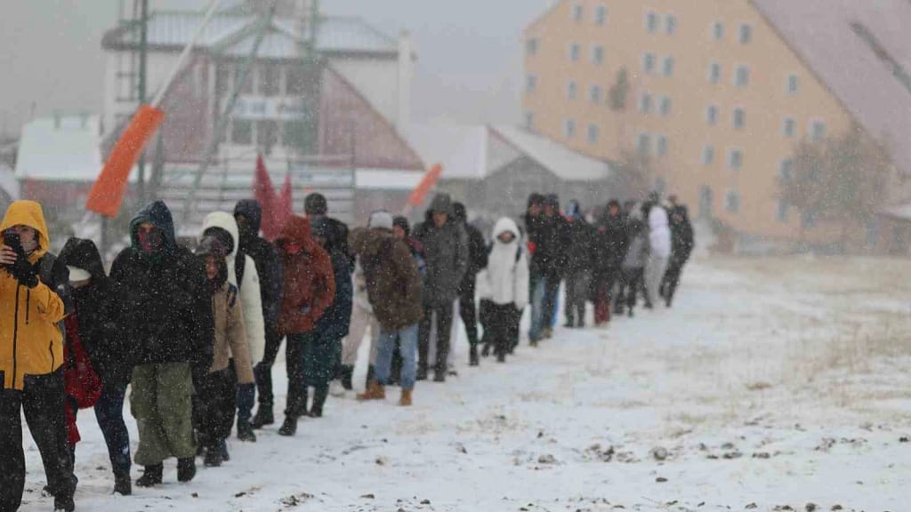 Yağış altında Palandöken’den inişe geçen öğrencilere, Erzurum Büyükşehir Belediyesi iştiraklerinden 3200 Ejder A.Ş. tarafından sıcak çorba ikram edildi.