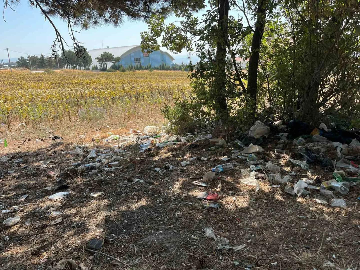 “Burası şehrin göbeği gibi bir yer. Önümüzde Kapalı Yüzme Havuzu ve yanında valilik konağı var. Her akşam burada onlarca kişi alkol alıyor. Çöpleri buralara atmışlar ve çok kötü bir görüntü oluşmuş. Hadi buraya çöp atanlar diyecek bir şey bulamazken, bu yolu belediye hiç mi görmüyor? Burada nereden baksan 1 kamyon çöp çıkar. Bu şişeler güneş ışığı ile orman yangınlarına sebep verebilir. Burada çıkacak bir orman yangınında bir ev ve villa tehlike altına girecek. Emniyetin bu ve OSB kavşağı karşısındaki dik bayırda vatandaşların içki içmesine izin vermemeli.”