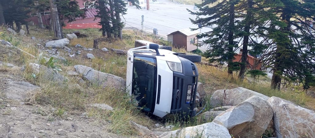 Bursa’nın Uludağ oteller bölgesinde virajı alamayan bir sürücü, kontrolünü kaybederek kullandığı kamyoneti şarampole devirdi. Kazada yaralanan olmadı.
