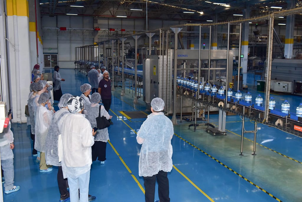 Bursa Büyükşehir Belediyesi Gençlik ve Spor Hizmetleri Dairesi Başkanlığı koordinasyonunda gerçekleştirilen teknik gezi kapsamında gençler, Bursa Su Fabrikası’nda üretim hatlarını ve laboratuvarı gezdi. Cosme Crones 200 ml bardak su ve 19 litre geri dönüşümlü damacana hatları hakkında detaylı bilgiler alan gençler, Cosme hattındaki ham maddeden sevkiyata kadar uzanan üretim hikâyesini uzman ekiplerden dinledi.