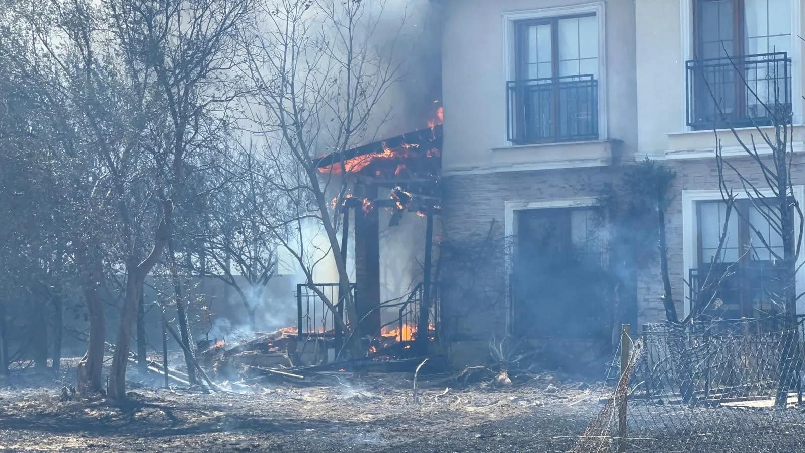 Riskli bölgelerde yaşayan vatandaşlar tahliye edilirken, Adranos ve Güzelyalı’da yerleşim yerlerini tehdit eden alevler kısa sürede evleri sardı. Çok sayıda villa ile evlerin önünde ve sokaklarda park halinde bulunan araçlar tamamen yandı.