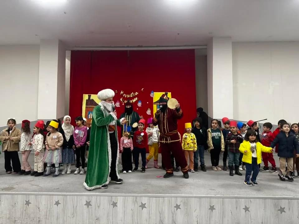 Geleneksel Türk gölge oyununun sevilen karakterleri Hacivat ve Karagöz ile mizahın simgesi Nasreddin Hocanın sahne aldığı gösteriler, çocuklar tarafından ilgiyle takip edildi. Program boyunca miniklerin kahkahaları salona renk kattı.