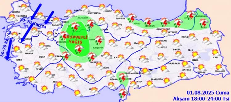 Meteoroloji Genel Müdürlüğü, 1 Ağustos Cuma günü için kuvvetli rüzgâr