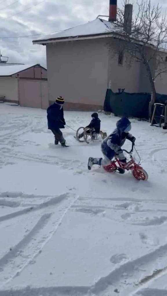 İlçe merkezine yaklaşık 11,5 kilometre uzaklıkta bulunan, Sündiken Dağları’nın eteklerindeki bin 430 rakımlı Lütfiye Mahallesi’nde çocuklar kartopu oynayarak ve kızakla köy yollarında kayarak eğlenceli anlar yaşadı. Boşnak nüfusun yoğun olarak yaşadığı mahallede karla kaplanan sokaklar, çocukların oyun alanına dönüştü.