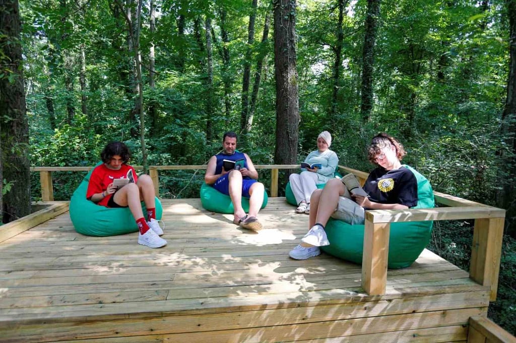 Ormanya içindeki Orman Kütüphanesi, kuş sesleri eşliğinde kitap okuma deneyimi sunuyor. Doğal atmosferiyle ziyaretçilerin ilgisi büyüyor.