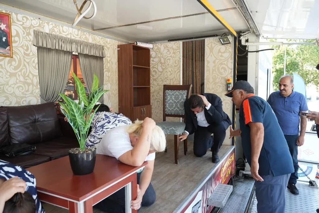 Yenişehir Belediyesi, afetlere hazırlık konusundaki iş birliklerini güçlendirmeye devam ediyor. Deprem öncesi, anı ve sonrasındaki doğru davranış biçimlerini aktararak afet farkındalığını artırmak amacıyla Heykel Meydanı’nda bir deprem simülasyon eğitimi gerçekleştirildi. Gerçek bir deprem deneyimi sunan simülasyon tırında, AFAD eğitmenleri vatandaşlara deprem anında ve sonrasında yapılması gerekenleri uygulamalı olarak aktardı.